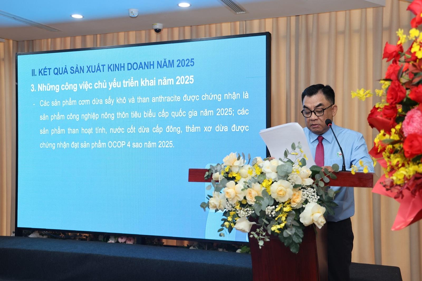 Phát biểu tại Đại hội, Ông Huỳnh Khắc Nhu - Tổng Giám đốc Công ty Cổ phần Trà Bắc tin tưởng rằng với nền tảng sản xuất ổn định, định hướng phát triển rõ ràng và sự đồng thuận của cổ đông, TRABACO sẽ tiếp tục khẳng định vị thế là doanh nghiệp tiêu biểu trong lĩnh vực chế biến sản phẩm từ dừa.