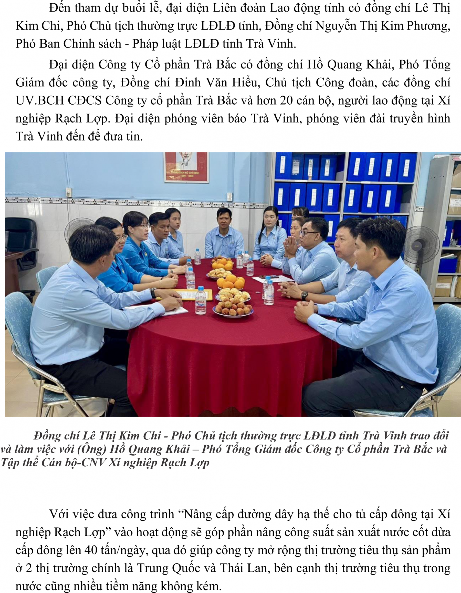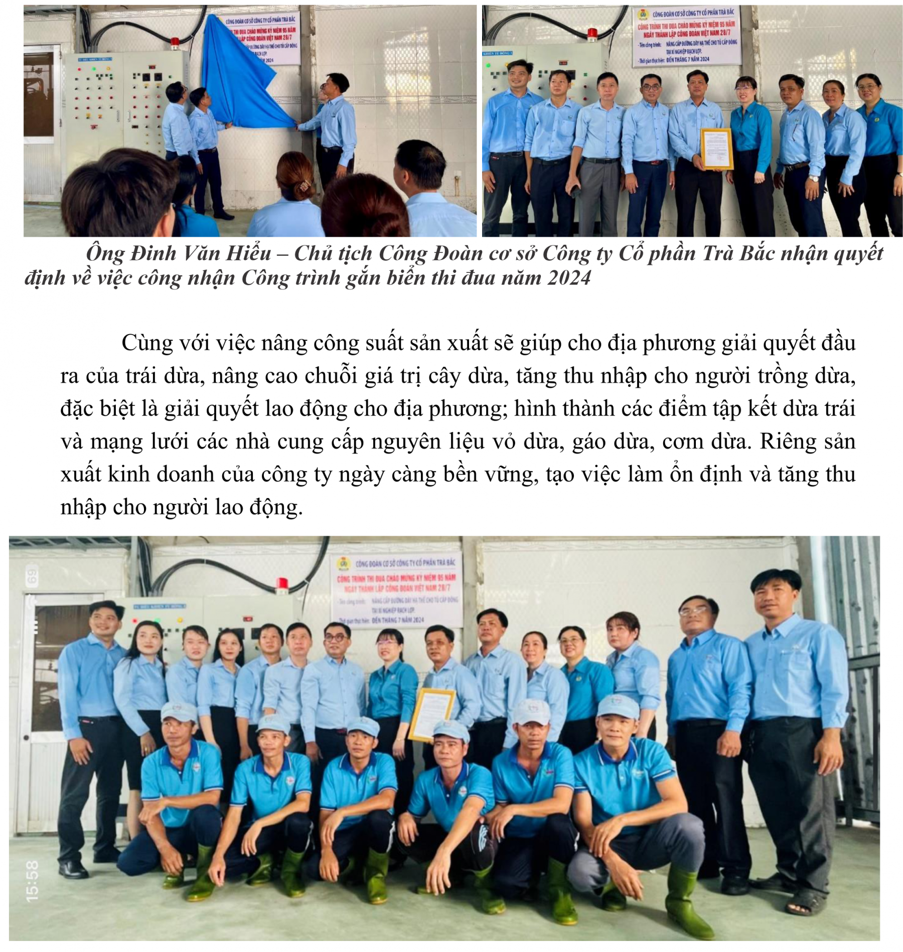 CÔNG ĐOÀN CƠ SỞ CÔNG TY CỔ PHẦN TRÀ BẮC ĐÓN NHẬN QUYẾT